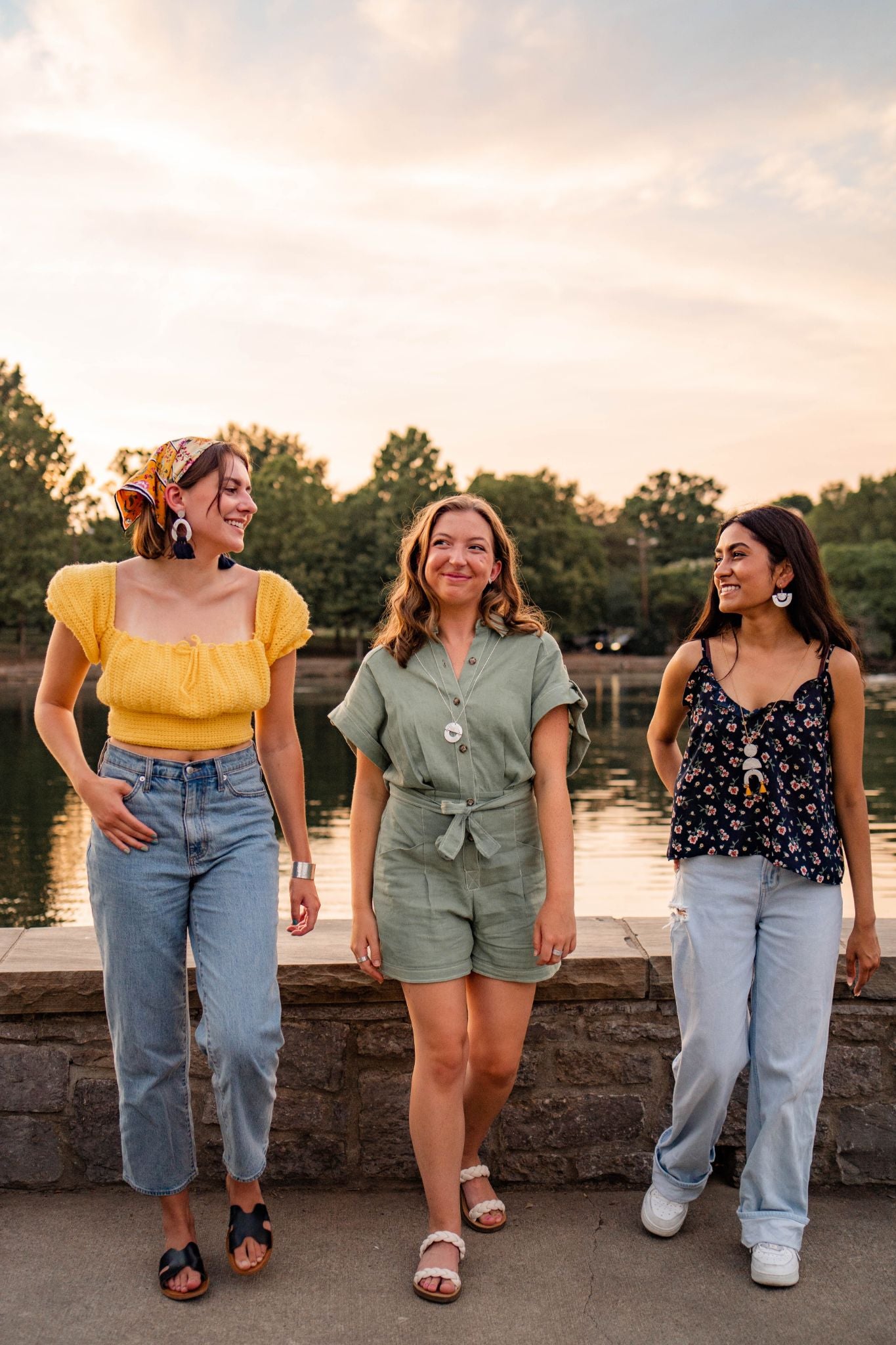 This geometric necklace is funky, trendy, and the perfect statement piece for your outfit. Upcycled aluminum shapes are paired with a gold chain and finished with mustard gold tassels. Throw it on with a plain dress or jumpsuit and voila, you’re ready to hit the town!